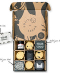 Each element is carefully crafted using sustainably sourced ingredients with completely plastic-free presentation suitable for professional environments. Personalized corporate messaging and sustainable branding options available for CSR-focused client meetings and environmentally responsible business entertaining.